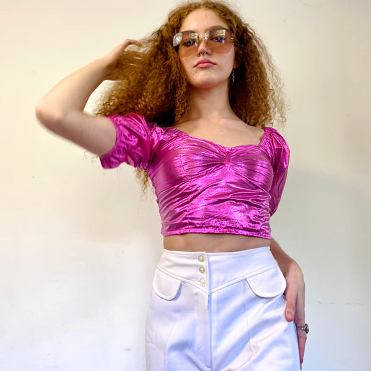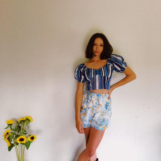 Such A Betty Handmade Puff Sleeve Crop Top Blue Vertical Stripes
